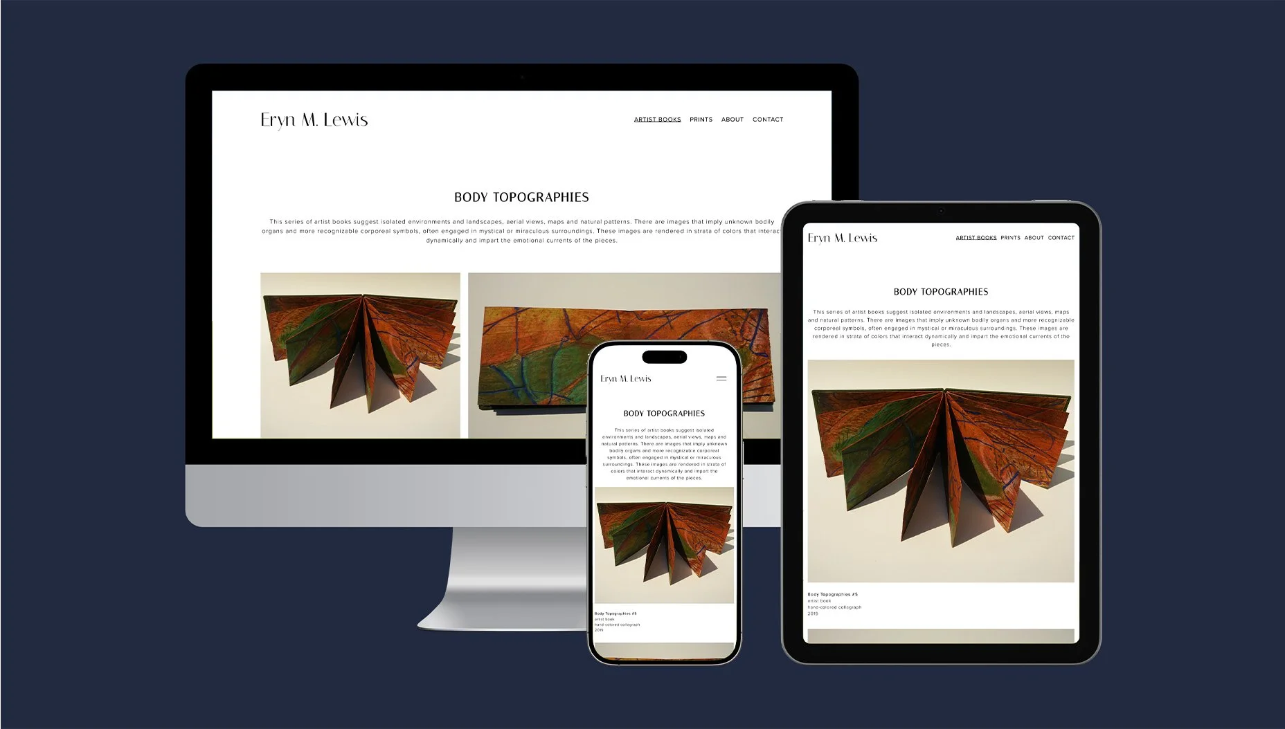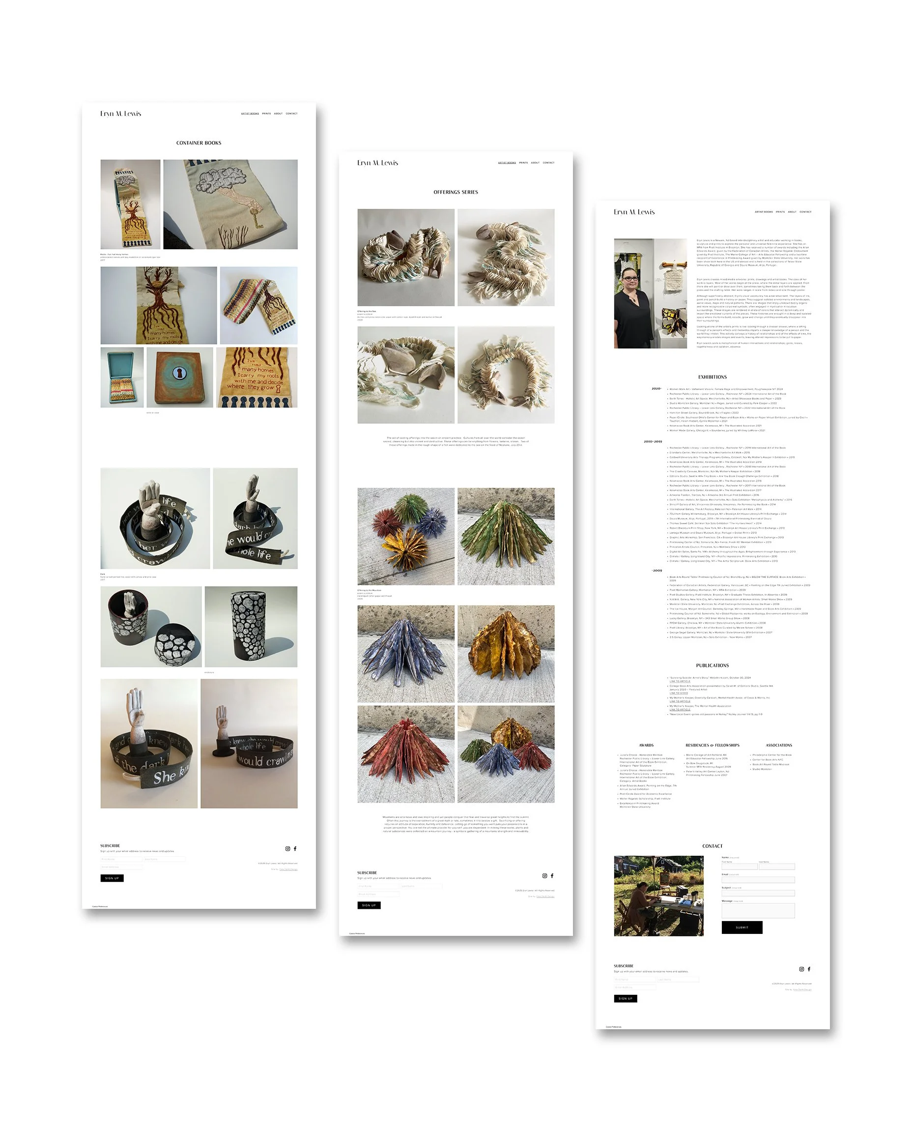 Since she was struggling with how to best present her diverse portfolio of bookart, prints and sculptures, we wireframed a few options so she could visualize groupings by medium, age or theme. Once the client was comfortable, we helped get her assets together and created a clean design to keep the focus on her work.